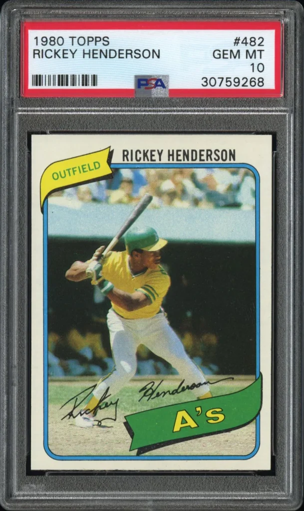 1980 Topps PSA 10 – $180,000+ The holy grail of Henderson collecting, with only 26 perfect copies existing despite over 43,000 submissions to PSA. This February 2021 sale firmly established Henderson in the elite tier of baseball card investments.
