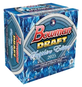 According to Beckett.com’s Andrew Harner, the 2025 Bowman Draft Sapphire Baseball set checks in at 200 cards, which is noticeably leaner compared to the flagship Draft release. Hobby boxes ship with eight packs and four cards per pack, totaling 32 cards per box.