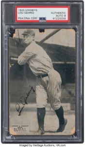 1925 Exhibits Lou Gehrig Rookie (PSA Authentic, Auto 8): Sold for $216,000 with only 4 PSA-authenticated autographed copies in existence.
