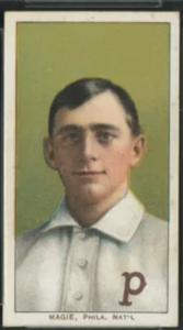 1909-11 T206 Sherry Magee Error: The misspelled “Magie” error card is so rare that PSA 10 data is pretty much nonexistent.