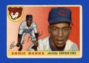 Ernie Banks #28: A PSA 8 version of Mr. Cub’s sophomore Topps card routinely sells for $2,000-plus, and it’s a great card that catches your eye with the red background and blue trim.